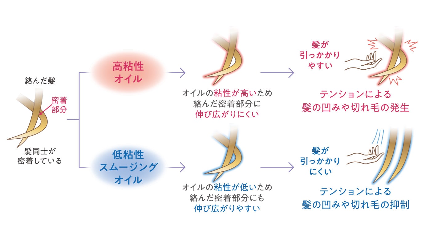 絡まり 毛先が散るように広がる髪にさらっとした指通りを与える
